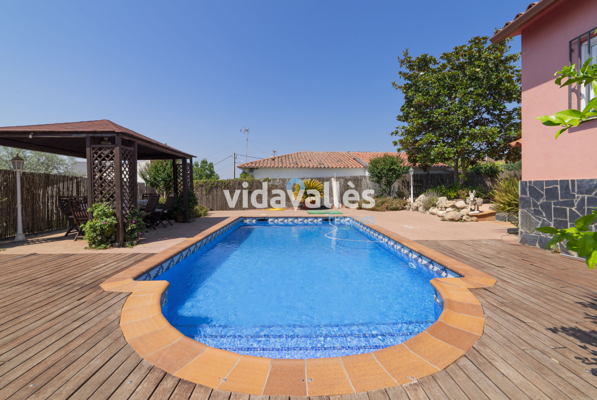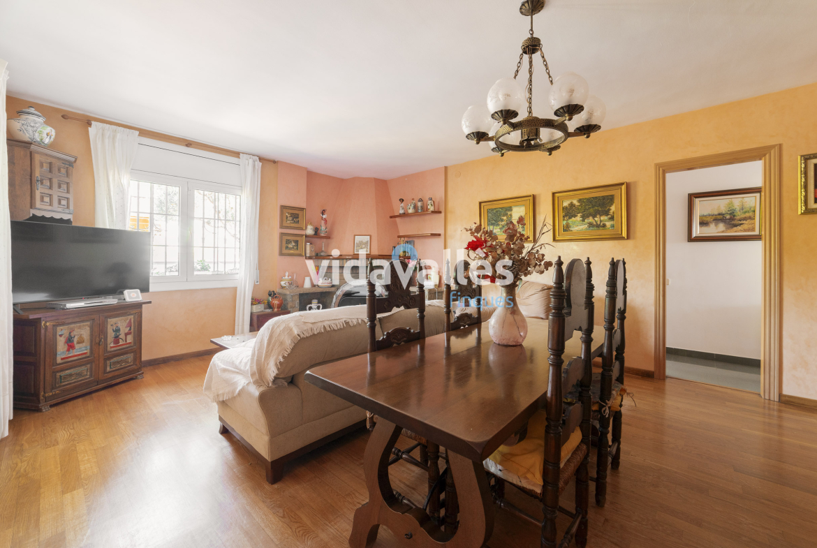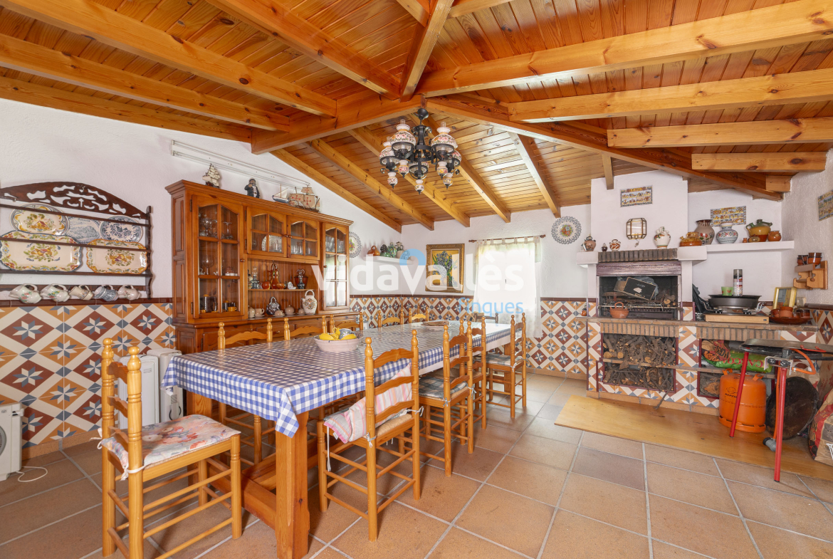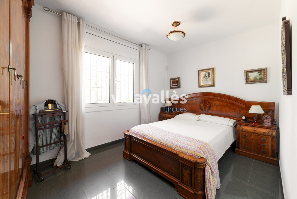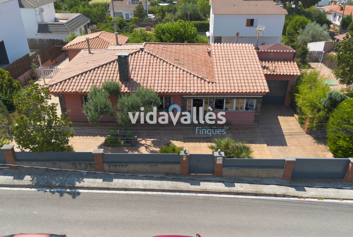 Es una casa a cuatro vientos, rodeada de patio y jardín, con mucha luz natural en todas sus estancias a lo largo del día. Des del patio se accede una bodega y, como complemento, junto a la vivienda hay una construcción anexa que actualmente se usa como comedor con barbacoa interior, aunque podría adaptarse fácilmente a otros usos como sala polivalente.