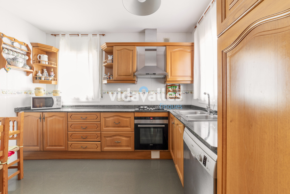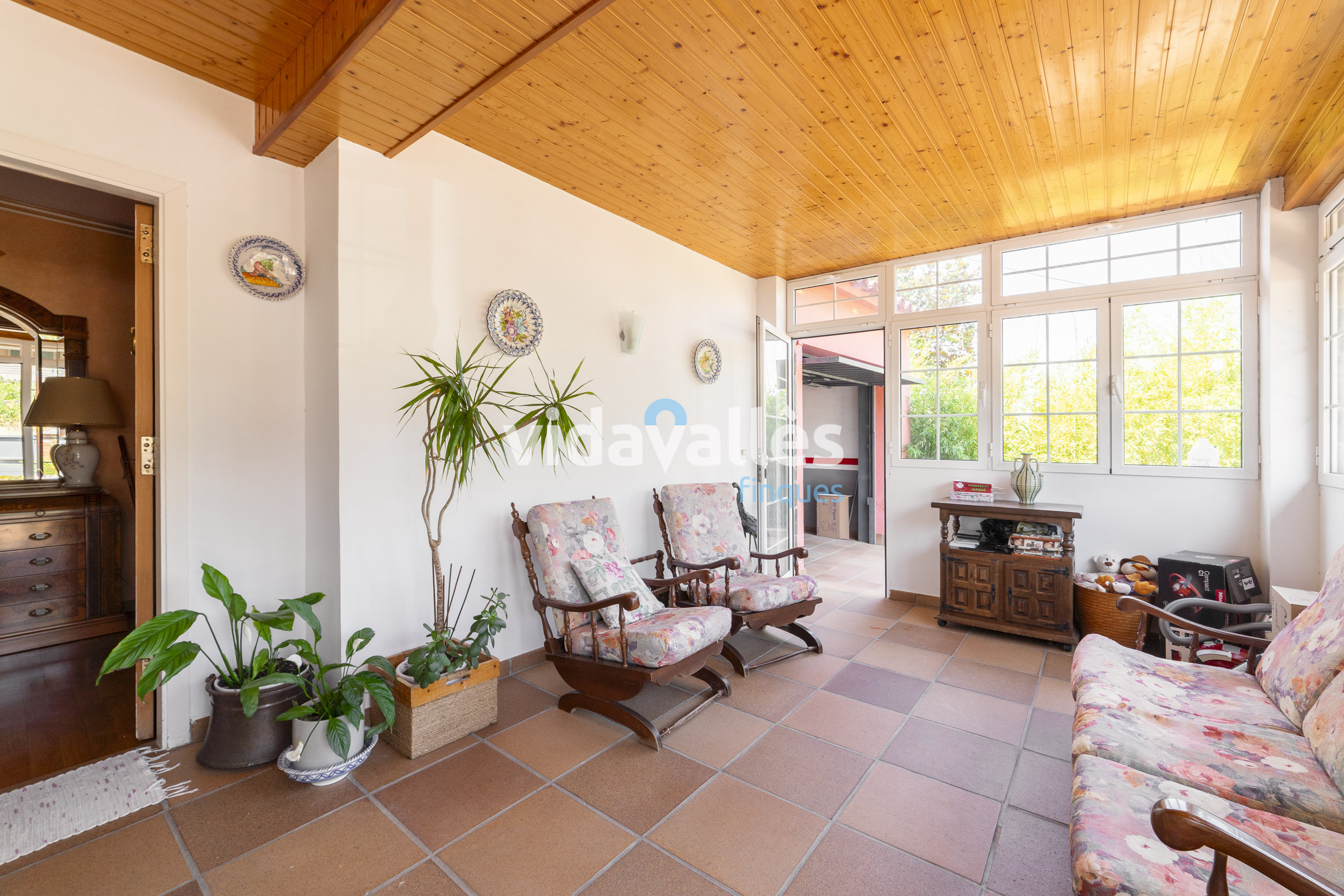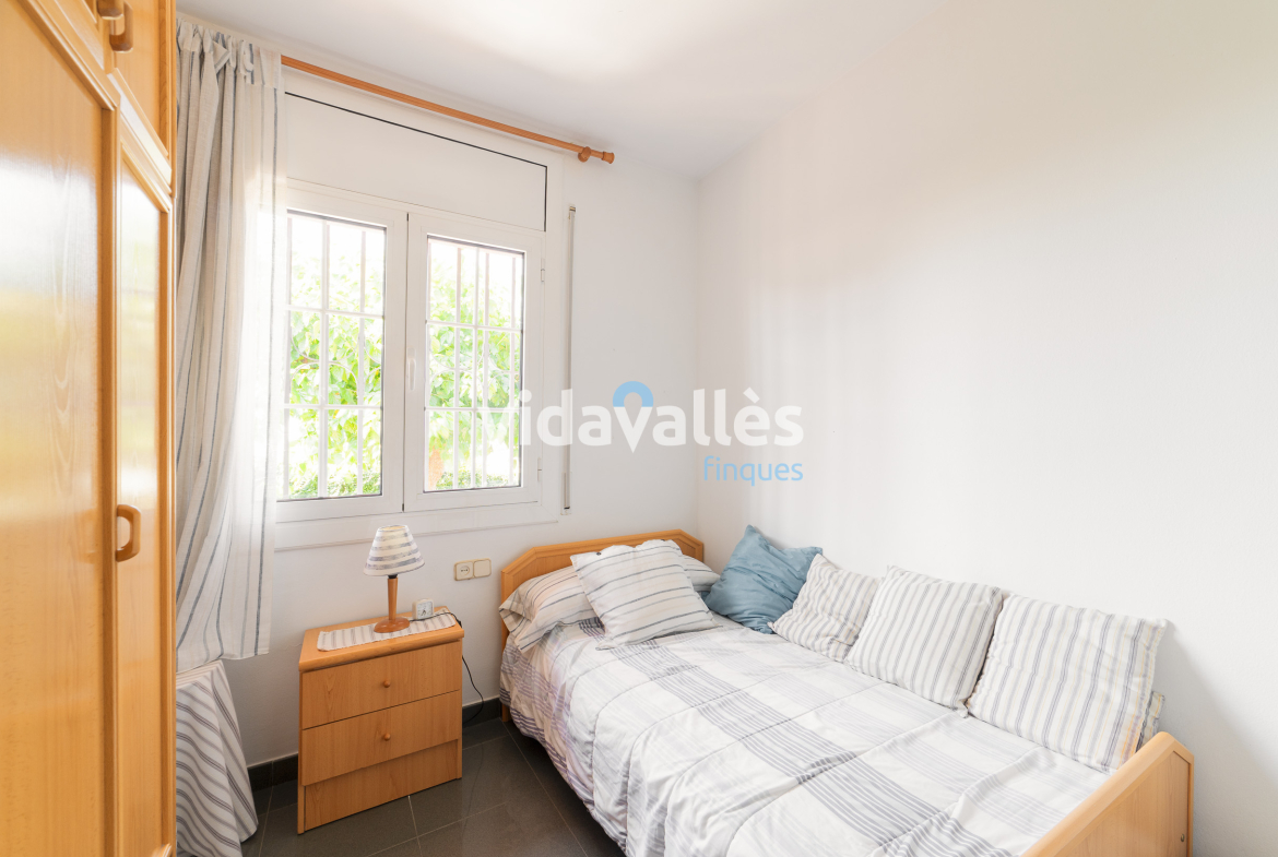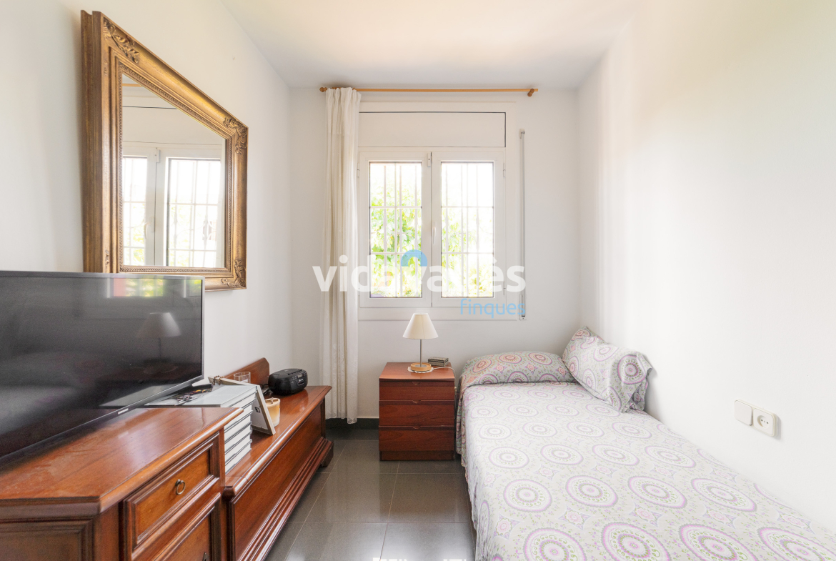 Es una casa a cuatro vientos, rodeada de patio y jardín, con mucha luz natural en todas sus estancias a lo largo del día. Des del patio se accede una bodega y, como complemento, junto a la vivienda hay una construcción anexa que actualmente se usa como comedor con barbacoa interior, aunque podría adaptarse fácilmente a otros usos como sala polivalente.