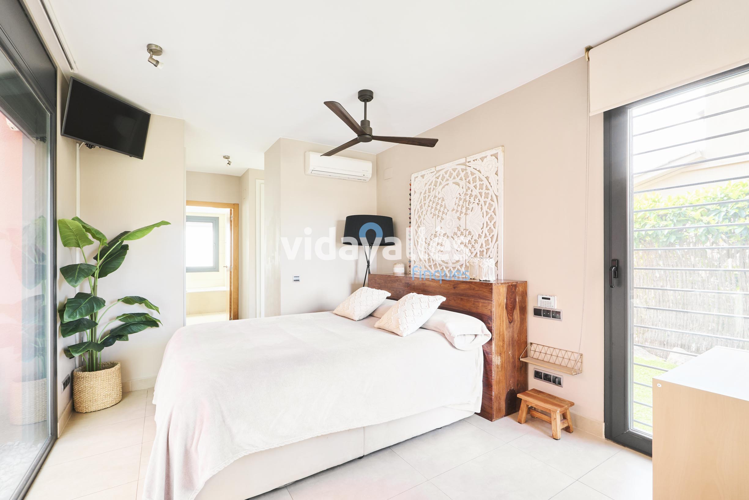 Y cuando salgas al jardín, te sorprenderán las vistas espectaculares de la montaña, un paisaje que te invita a desconectar y relajarte. La piscina privada de agua salada, enmarcada por la belleza natural de la zona, será tu aliada perfecta en los cálidos días de verano.