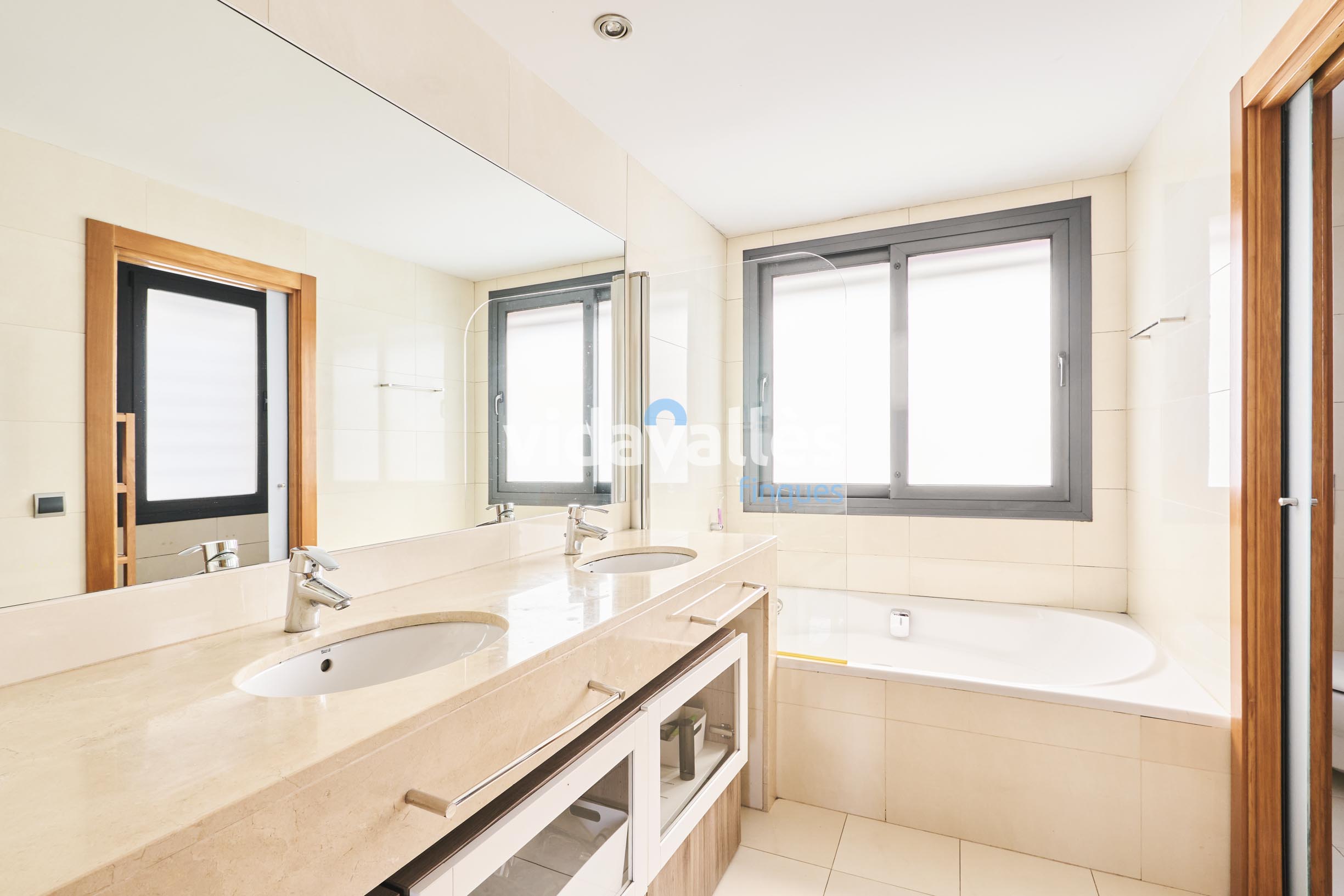 La cocina office, impecablemente equipada, se abre al salón comedor, un espacio luminoso y acogedor, inundado de luz natural gracias al patio interior que aprovecha los rayos del sol a lo largo del día. Este ambiente, tan cálido y armonioso, es ideal para compartir con familia y amigos.