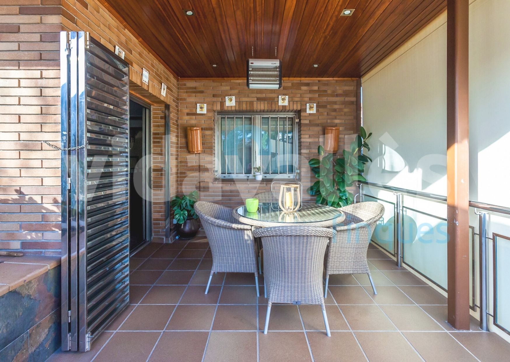 En la planta principal, un amplio hall de entrada nos da acceso a la gran cocina office con lavadero. También dispone de un baño completo, una habitación doble, un espacioso salón comedor dividido en dos ambientes con grandes ventanales que inundan de luz la estancia y que comunican con una cuidada zona ajardinada, con barbacoa, un amplio y acogedor porche cubierto y una casita de madera con un jacuzzi, en su interior.