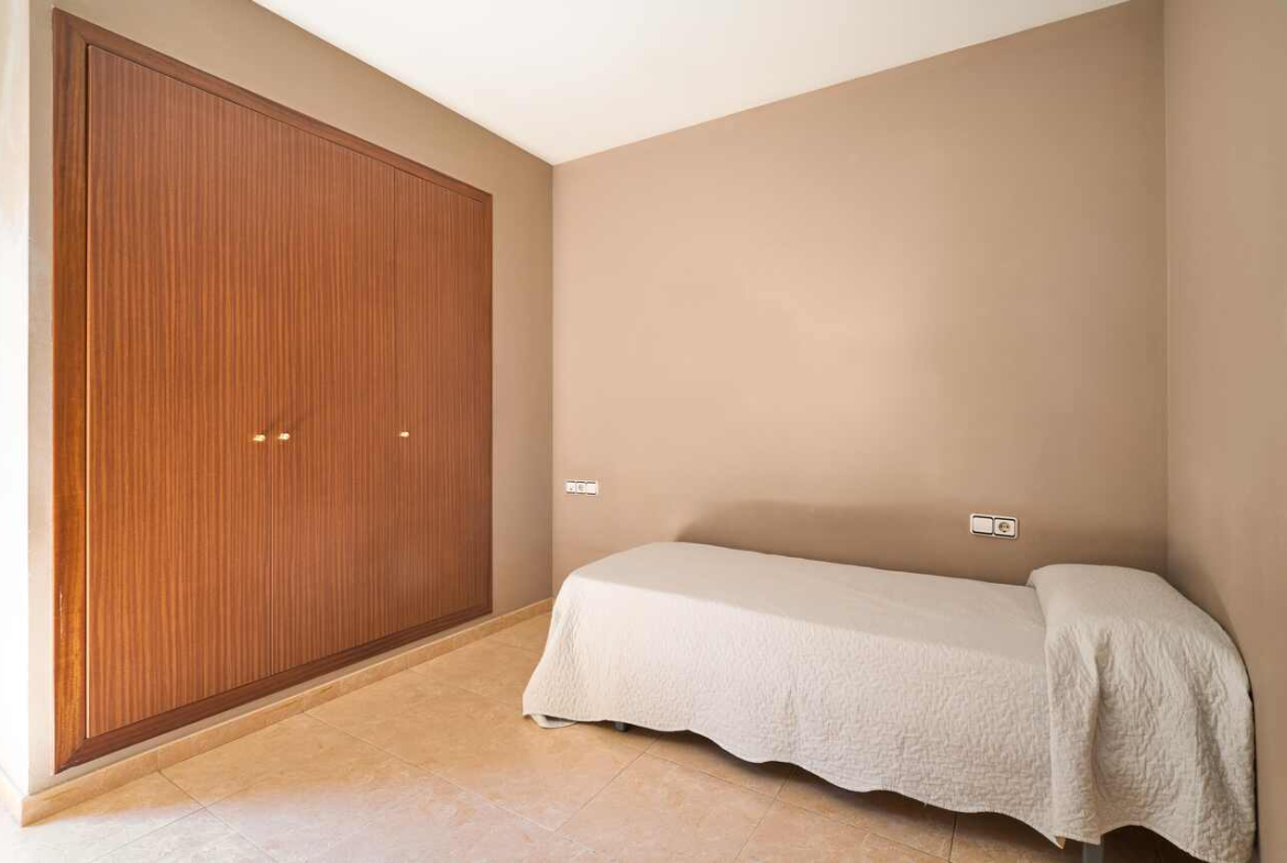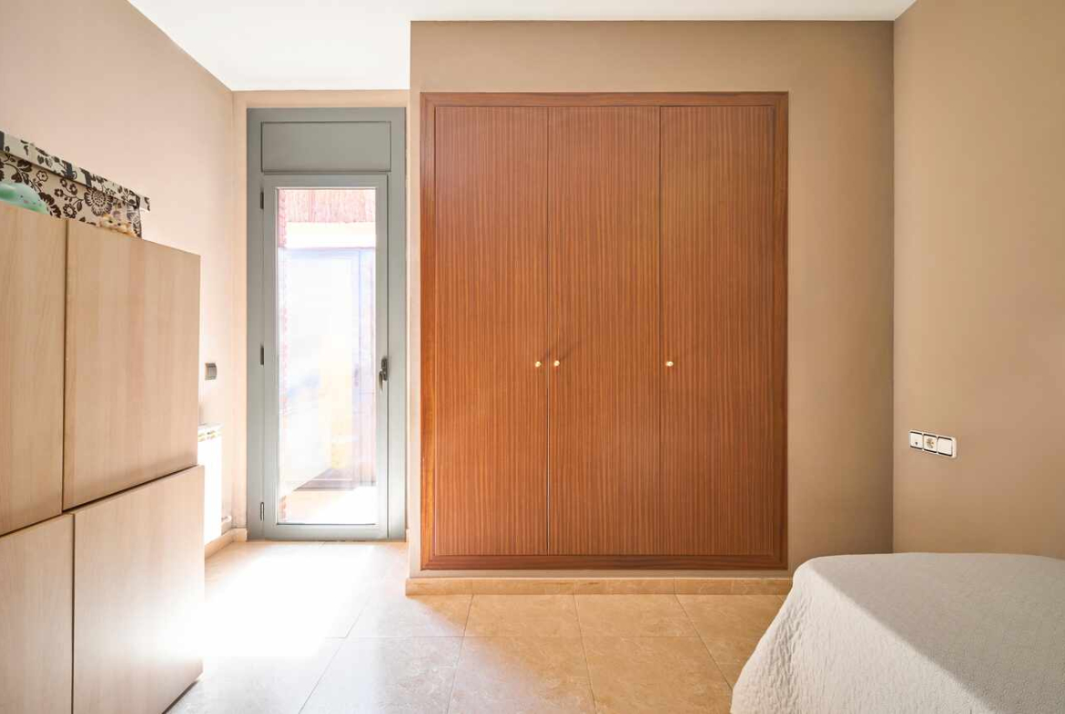 El piso cuenta con dos dormitorios, uno doble y otro individual, proporcionando el espacio y la privacidad que necesitas. Uno de ellos tiene acceso directo a la terraza, convirtiéndose en un rincón perfecto para descansar y disfrutar del aire libre sin salir de casa. El baño está equipado con una bañera, ofreciendo un lugar relajante para desconectar tras una larga jornada.
