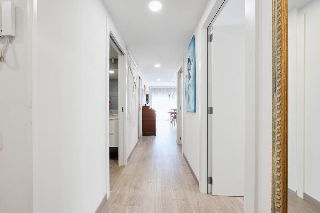 Distribución óptima: La vivienda consta de 3 habitaciones, 2 baños completos (uno de ellos en suite con un exquisito plato de ducha), un lavadero y un amplio salón comedor que se fusiona con una cocina americana de ensueño que nos conecta con el gran balcón con espacio para una mesa amplia. El espacio fluye sin esfuerzo, proporcionando un ambiente relajante y estéticamente impresionante.